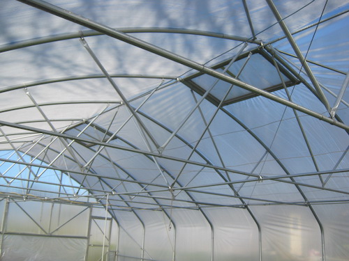 Ridge ventilation is perfect for warmer climates when hot air needs to be released quickly. A 3’ roll-up vent on the ridge of the tunnel extends the entire length of the structure. The position of this vent allows for the hottest region of the tunnel to be ventilated immediately upon opening.